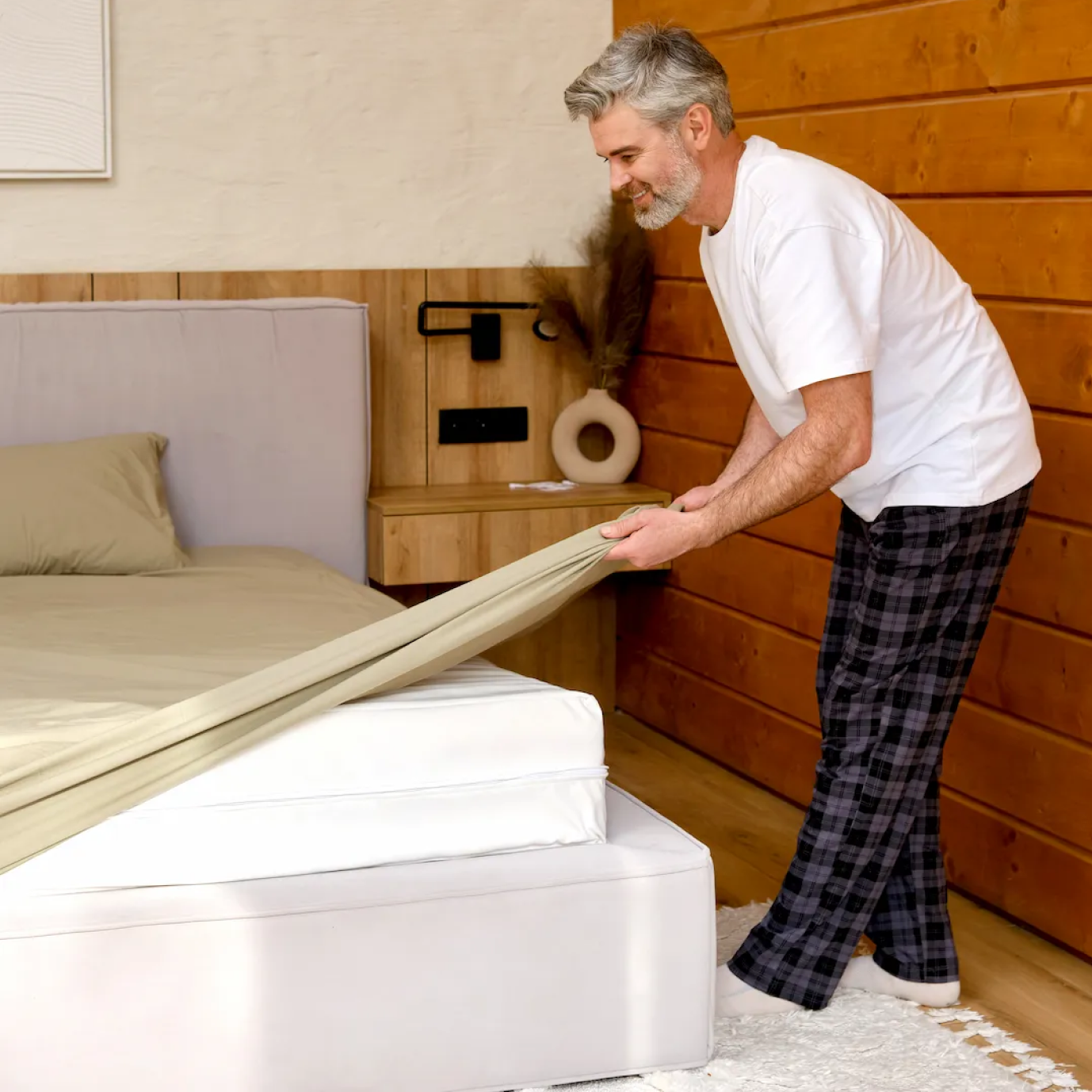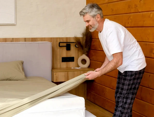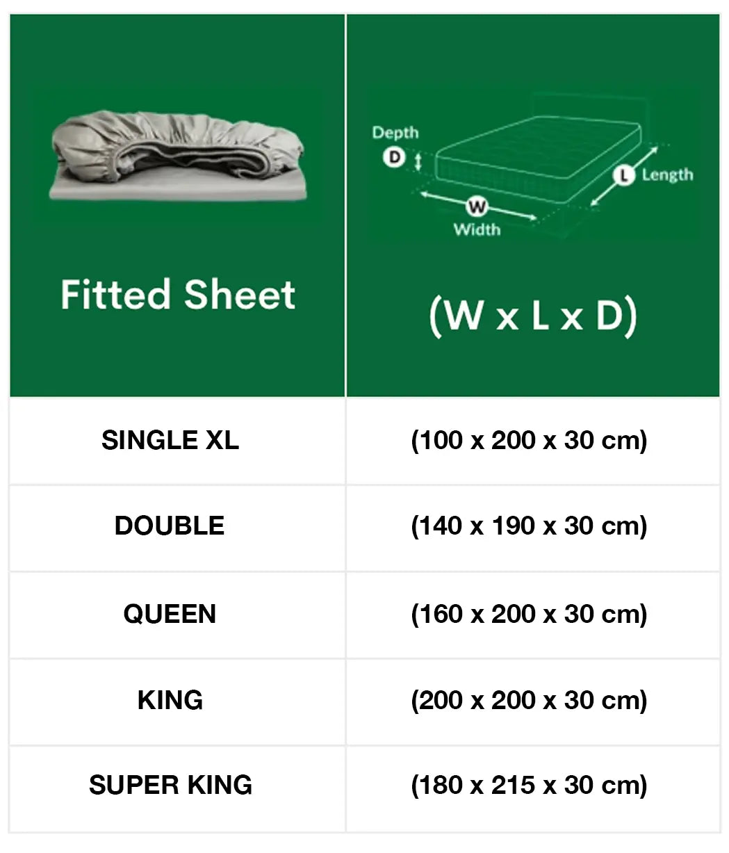 The depth of our fitted sheets is 30 cm, which covers a wide percentage of commonly found mattresses. This ensures that the sheet stays in place throughout the night and provides consistent grounding benefits.